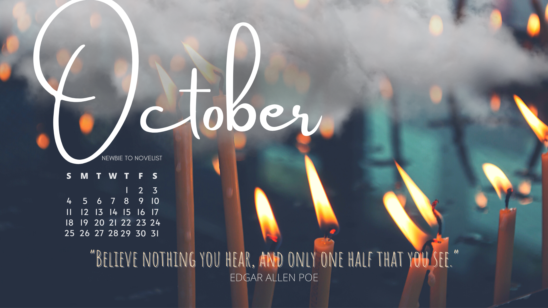 Autumn is here! And with the start of October comes the start of spooky season. To all my fellow witches out there, gather your pumpkins and potions and get cozy. A new set of digital calendar wallpapers are here, to help you stay organized during October, which I might start referring to as NaNoWriMo Eve!